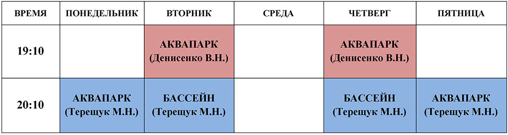 - занятия по аквааэробике для организованных групп (дети, спортсмены).