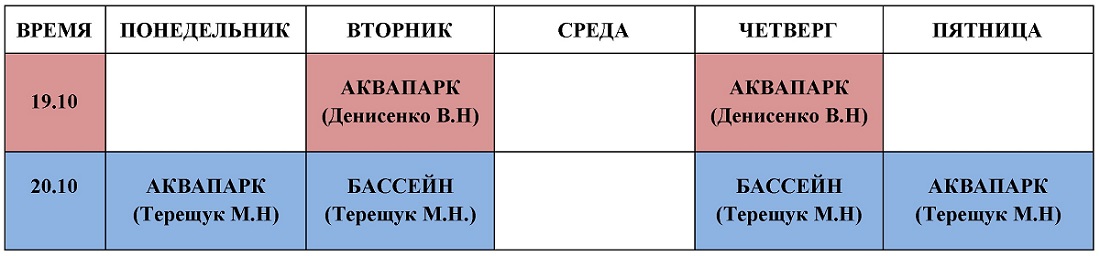 - занятия по аквааэробике для организованных групп (дети, спортсмены).